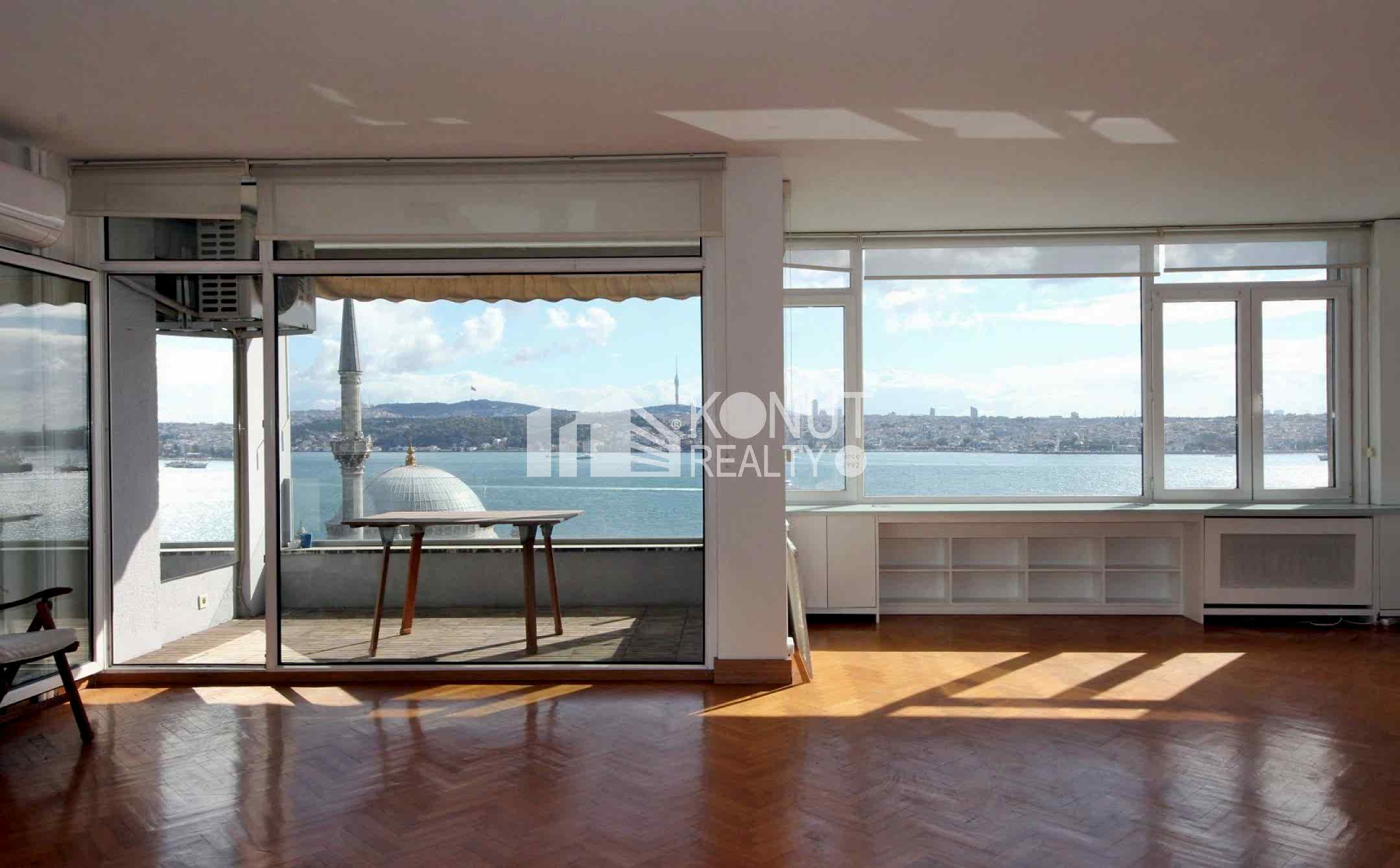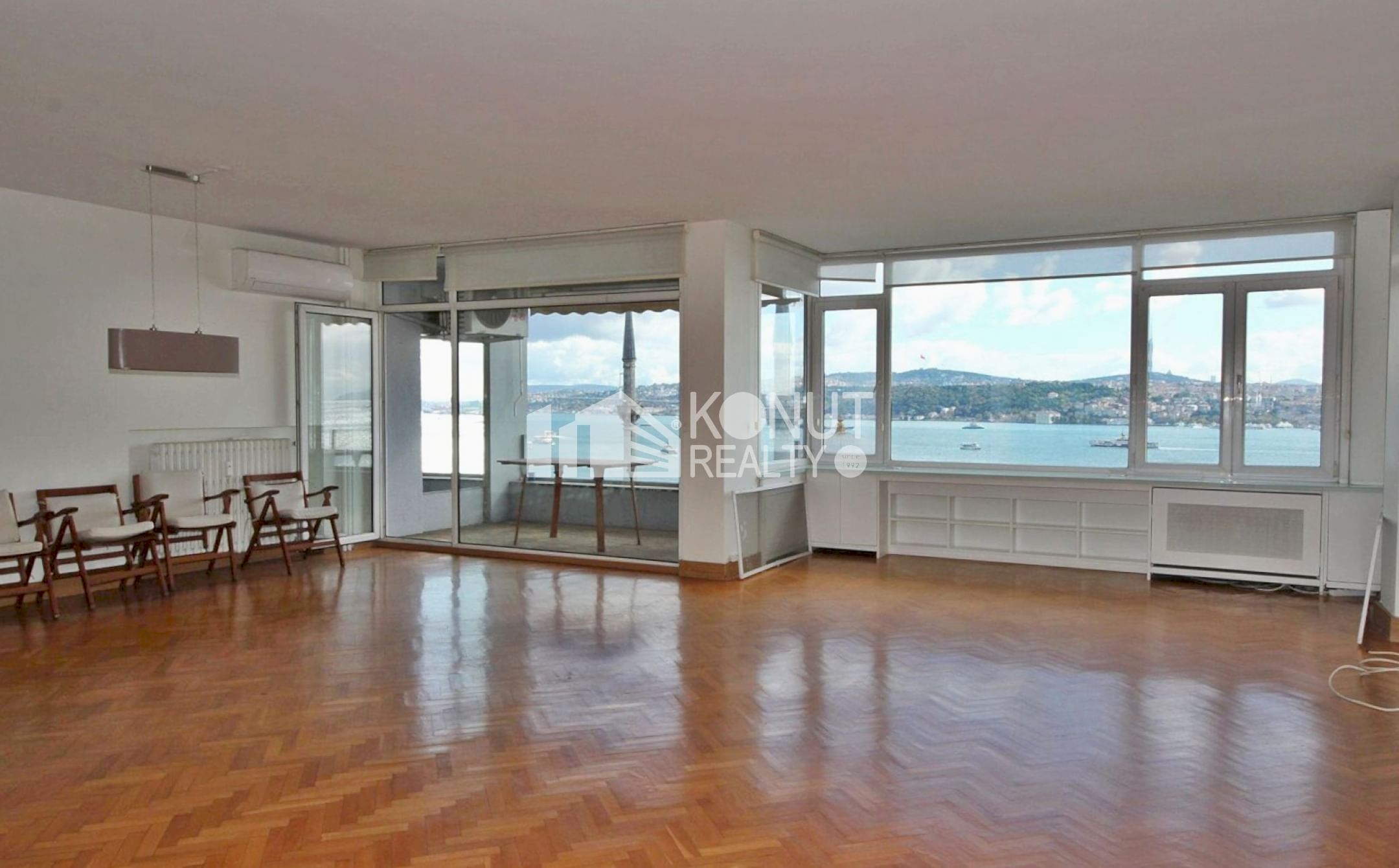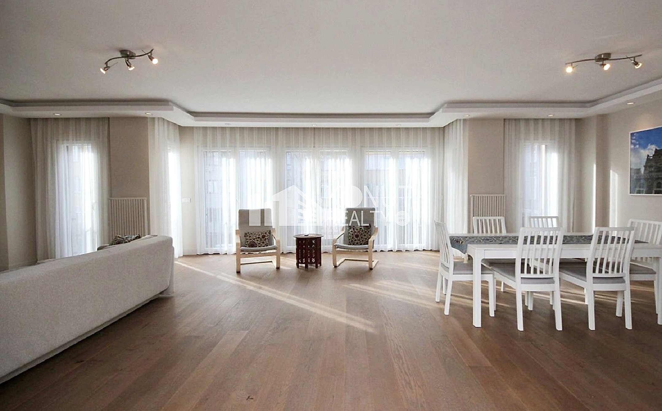 On a decent street in Kabatas, on the 3rd floor of a building with parking lot and elevator, 180 m², with Bosphorus view, balcony, living room, 3 bedrooms, storage room, kitchen and 3 bathrooms, white goods, apartment for rent.